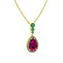 Rodolit garnet ve kök zümrüt 8 ayar altın kolye (40 cm altın rolo zincir)