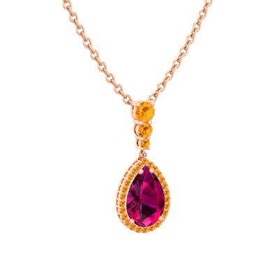 Rodolit garnet ve sitrin 925 ayar rose altın kaplama gümüş kolye (40 cm rose altın rolo zincir)