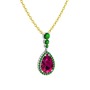 Rodolit garnet ve yeşil kuvars 18 ayar beyaz altın kolye (40 cm gümüş rolo zincir)