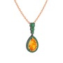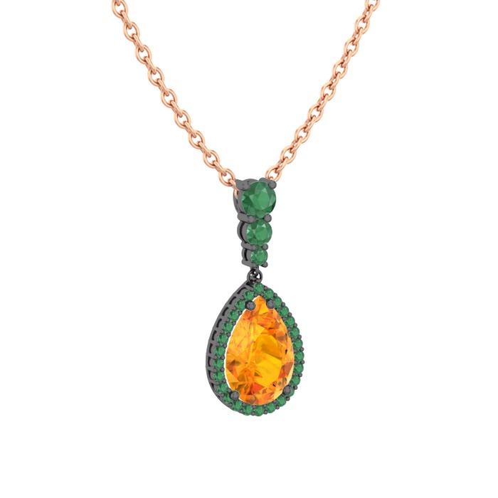 Sitrin ve kök zümrüt 925 ayar siyah rodyum kaplama gümüş kolye (40 cm rose altın rolo zincir)