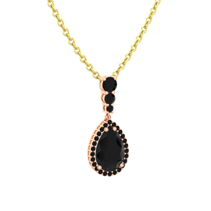 Siyah zirkon 8 ayar rose altın kolye (40 cm gümüş rolo zincir)