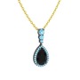 Siyah zirkon ve akuamarin 925 ayar siyah rodyum kaplama gümüş kolye (40 cm altın rolo zincir)