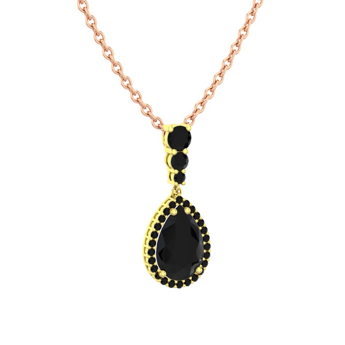 Siyah zirkon 925 ayar altın kaplama gümüş kolye (40 cm rose altın rolo zincir)