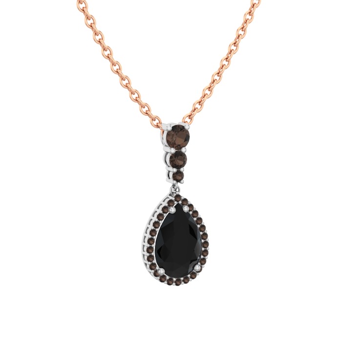 Siyah zirkon ve dumanlı kuvars 18 ayar beyaz altın kolye (40 cm rose altın rolo zincir)