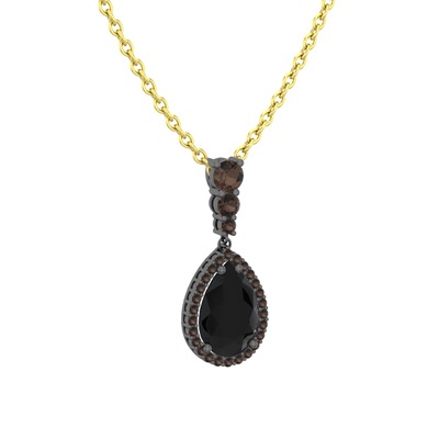 Siyah zirkon ve dumanlı kuvars 925 ayar siyah rodyum kaplama gümüş kolye (40 cm altın rolo zincir)