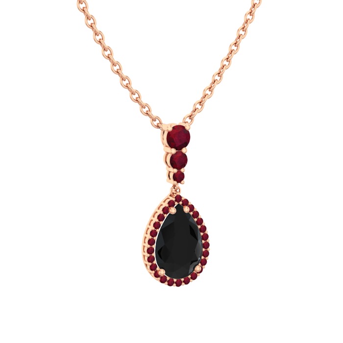 Siyah zirkon ve kök yakut 8 ayar rose altın kolye (40 cm rose altın rolo zincir)