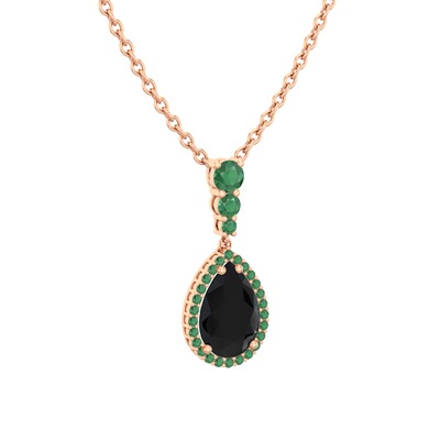 Siyah zirkon ve kök zümrüt 925 ayar rose altın kaplama gümüş kolye (40 cm rose altın rolo zincir)