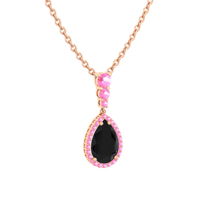 Siyah zirkon ve pembe kuvars 18 ayar rose altın kolye (40 cm rose altın rolo zincir)
