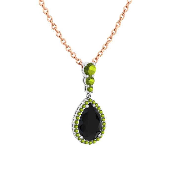 Siyah zirkon ve peridot 8 ayar beyaz altın kolye (40 cm gümüş rolo zincir)