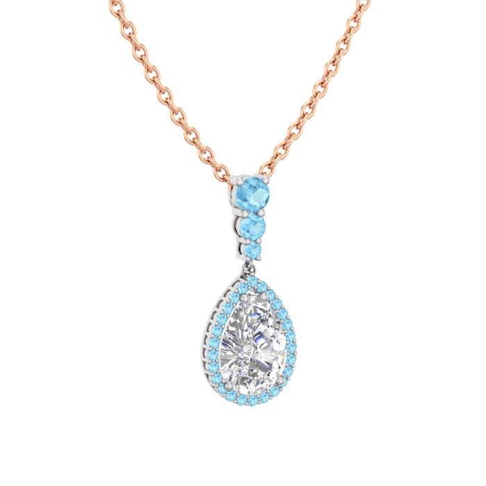 Swarovski ve akuamarin 925 ayar gümüş kolye (40 cm gümüş rolo zincir)