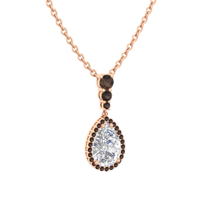 Swarovski ve dumanlı kuvars 925 ayar rose altın kaplama gümüş kolye (40 cm rose altın rolo zincir)