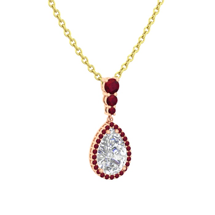Swarovski ve kök yakut 8 ayar rose altın kolye (40 cm gümüş rolo zincir)