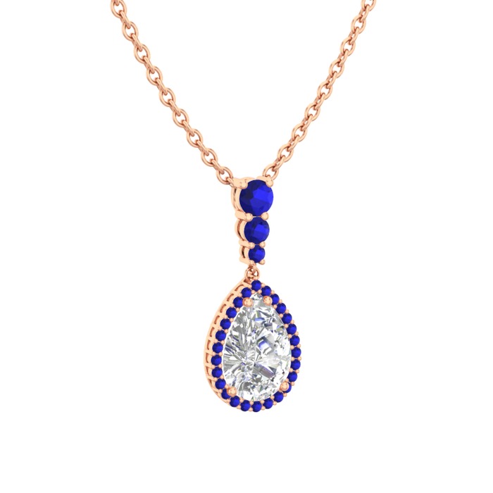 Swarovski ve lab safir 8 ayar rose altın kolye (40 cm rose altın rolo zincir)