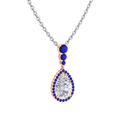 Swarovski ve lab safir 925 ayar rose altın kaplama gümüş kolye (40 cm beyaz altın rolo zincir)
