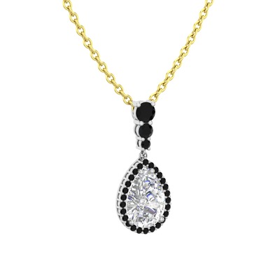 Swarovski ve siyah zirkon 18 ayar beyaz altın kolye (40 cm gümüş rolo zincir)