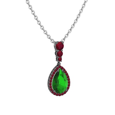 Yeşil kuvars ve kök yakut 925 ayar siyah rodyum kaplama gümüş kolye (40 cm beyaz altın rolo zincir)