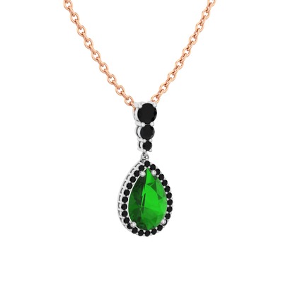 Yeşil kuvars ve siyah zirkon 14 ayar beyaz altın kolye (40 cm gümüş rolo zincir)
