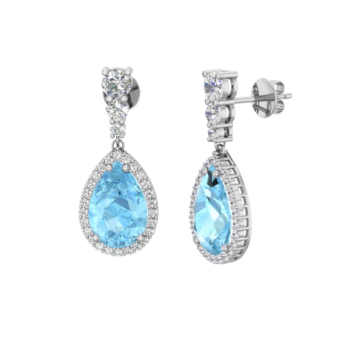 Akuamarin ve beyaz zirkon 925 ayar gümüş küpe