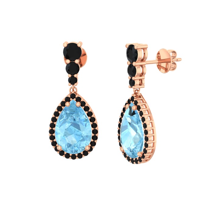 Akuamarin ve siyah zirkon 925 ayar rose altın kaplama gümüş küpe