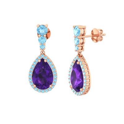 Ametist ve akuamarin 925 ayar rose altın kaplama gümüş küpe