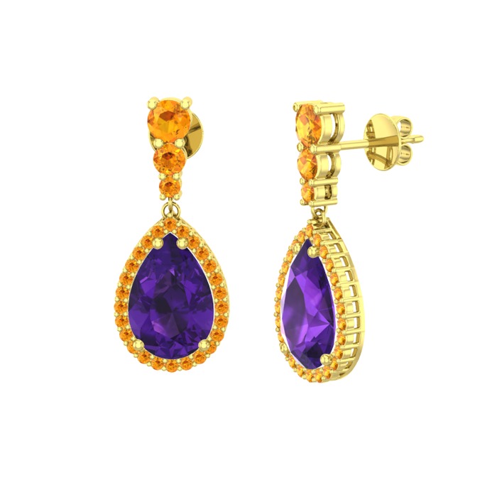 Ametist ve sitrin 925 ayar altın kaplama gümüş küpe