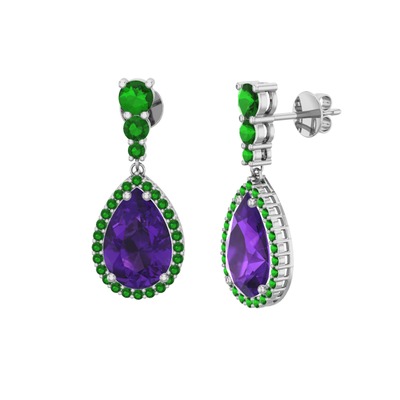 Ametist ve yeşil kuvars 925 ayar gümüş küpe