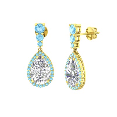 Beyaz zirkon ve akuamarin 8 ayar altın küpe