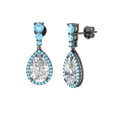 Beyaz zirkon ve akuamarin 925 ayar siyah rodyum kaplama gümüş küpe