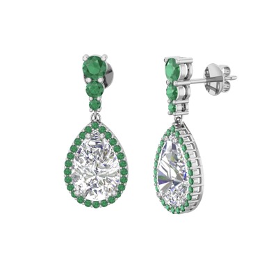 Beyaz zirkon ve kök zümrüt 14 ayar beyaz altın küpe