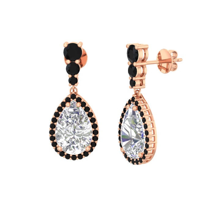Beyaz zirkon ve siyah zirkon 14 ayar rose altın küpe