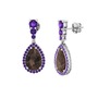 Dumanlı kuvars ve ametist 8 ayar beyaz altın küpe