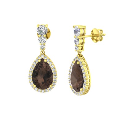 Dumanlı kuvars ve beyaz zirkon 14 ayar altın küpe