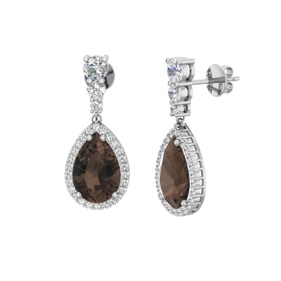 Dumanlı kuvars ve beyaz zirkon 18 ayar beyaz altın küpe