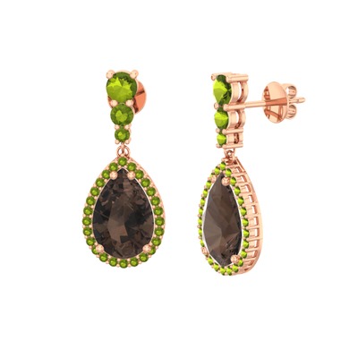 Dumanlı kuvars ve peridot 925 ayar rose altın kaplama gümüş küpe