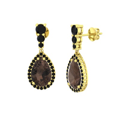 Dumanlı kuvars ve siyah zirkon 18 ayar altın küpe