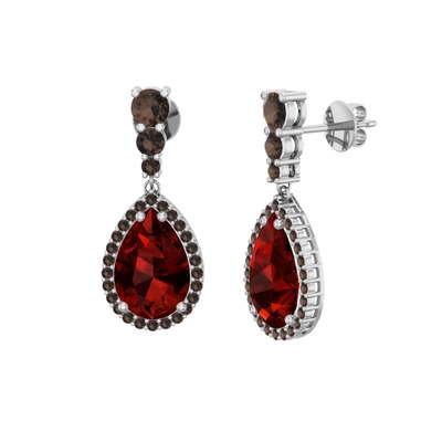 Garnet ve dumanlı kuvars 8 ayar beyaz altın küpe