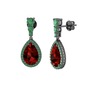 Garnet ve kök zümrüt 925 ayar siyah rodyum kaplama gümüş küpe