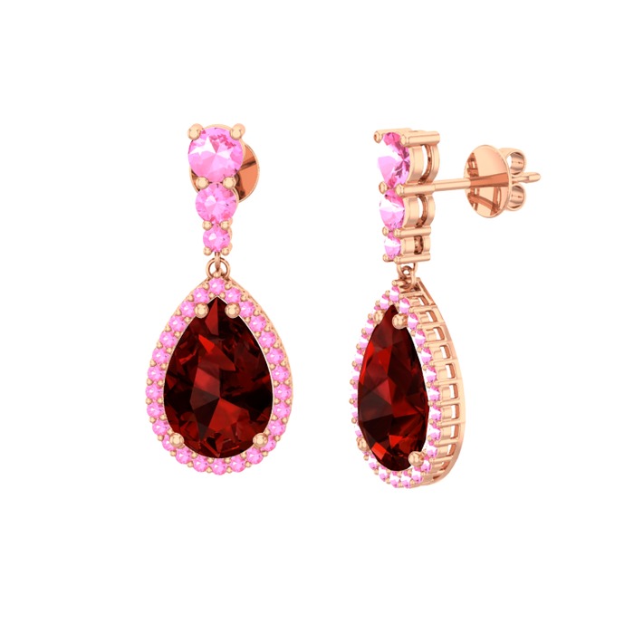 Garnet ve pembe kuvars 925 ayar rose altın kaplama gümüş küpe