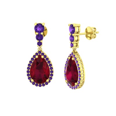 Kök yakut ve ametist 8 ayar altın küpe