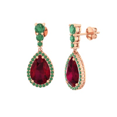 Kök yakut ve kök zümrüt 18 ayar rose altın küpe