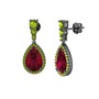 Kök yakut ve peridot 925 ayar siyah rodyum kaplama gümüş küpe