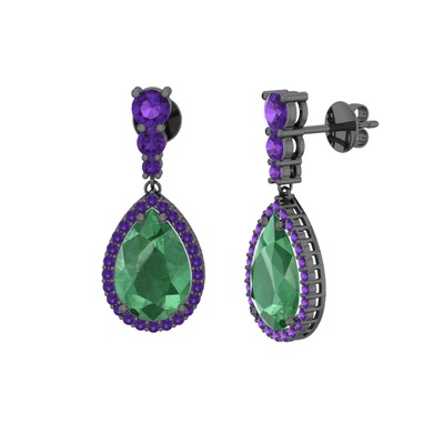 Kök zümrüt ve ametist 925 ayar siyah rodyum kaplama gümüş küpe