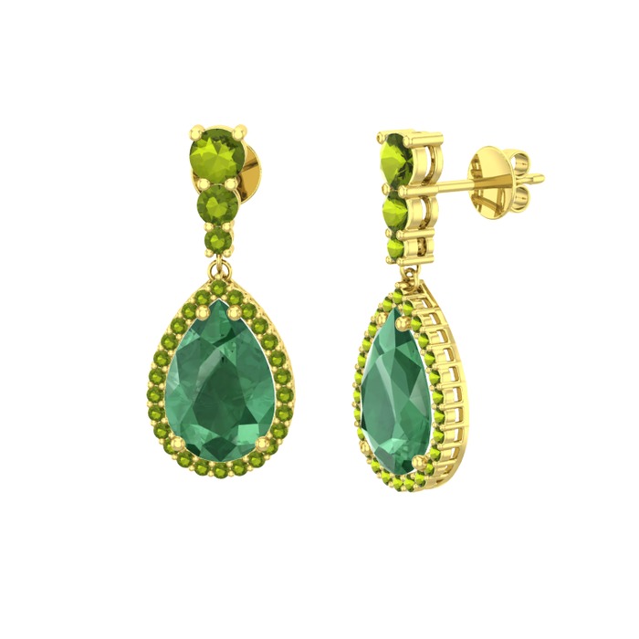 Kök zümrüt ve peridot 18 ayar altın küpe