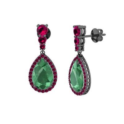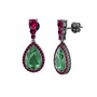 Kök zümrüt ve rodolit garnet 925 ayar siyah rodyum kaplama gümüş küpe