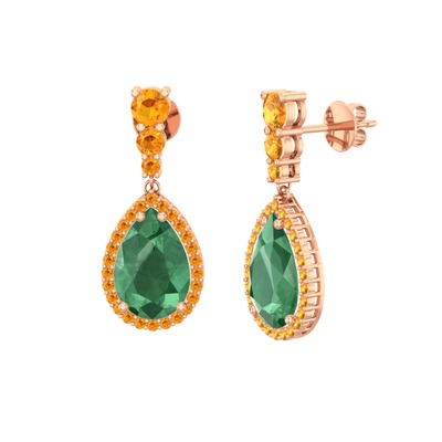 Kök zümrüt ve sitrin 14 ayar rose altın küpe