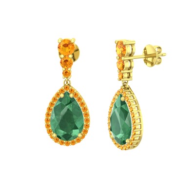 Kök zümrüt ve sitrin 18 ayar altın küpe