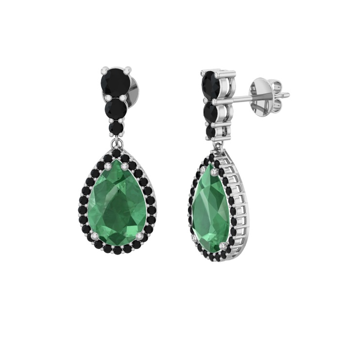Kök zümrüt ve siyah zirkon 18 ayar beyaz altın küpe