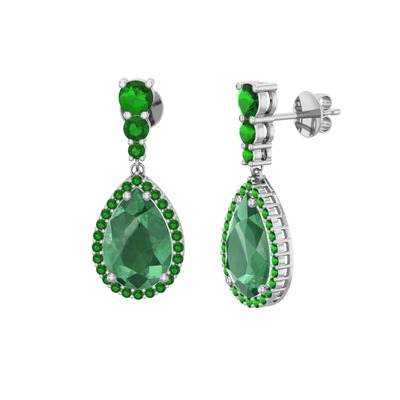 Kök zümrüt ve yeşil kuvars 925 ayar gümüş küpe