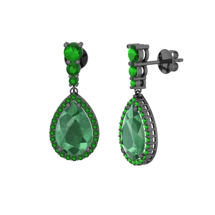 Kök zümrüt ve yeşil kuvars 925 ayar siyah rodyum kaplama gümüş küpe