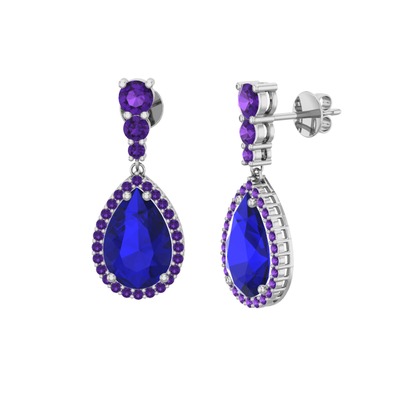 Lab safir ve ametist 18 ayar beyaz altın küpe